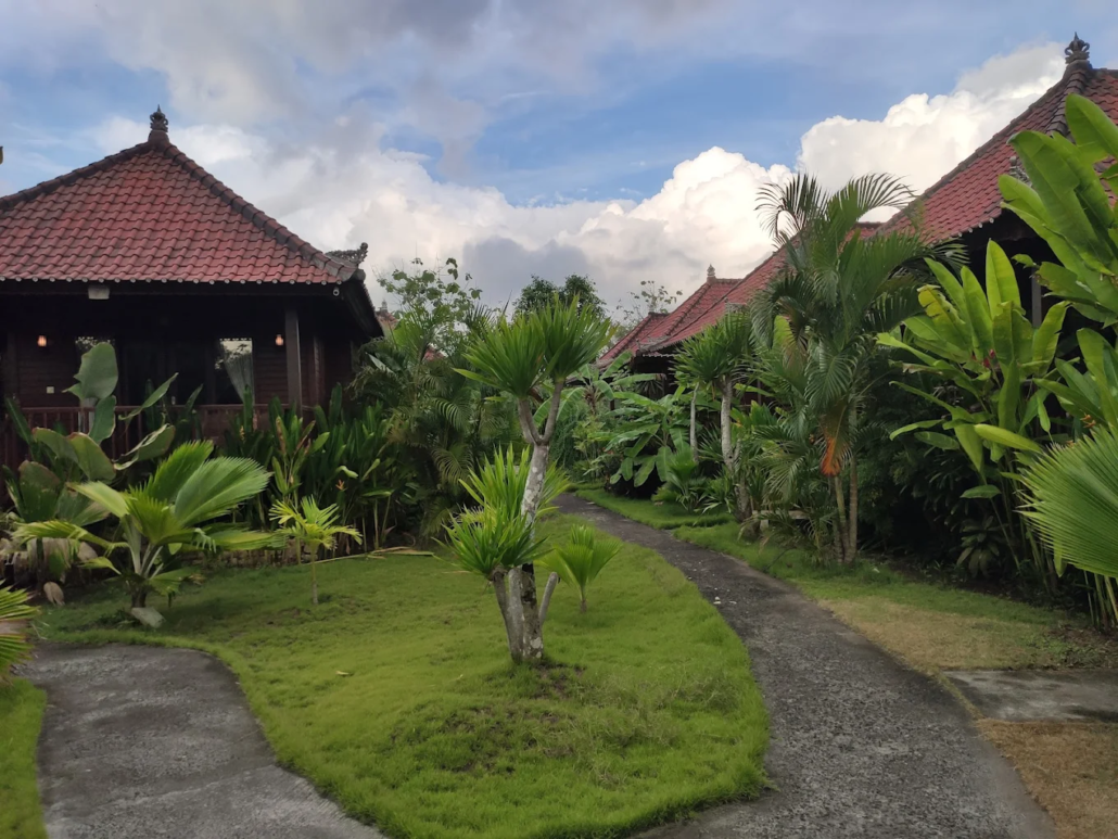 Tucked away a 7-minute walk from the nearest beach, this 3-star hotel is a very popular choice despite being further away than Niti’s or Akah. For about 40 AUD you get your private lovely cabin with a balcony overlooking the garden and pool.
